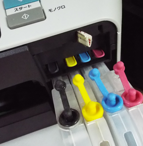 JUGEMテーマ:今日のお買い物 2012年11月 タダプリント ブラザー工業 互換インク 4色セット LC11-4PK(LC16-4PK) インクボトルと大容量カートリッジ(66本相当分) Amazonで、8,900円で購入。 ちょっと、特殊な使い方をします。 インクカセットが純正品とサイズが違うので、インクカセットの蓋を閉めないで 開けっ放しになります。 そのために、ふたを閉めたようにするために蓋が閉まったように偽装します(笑)