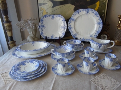 JUGEMテーマ:今日のお買い物 昨日のアンティークマーケットで、素敵な出会いがありました。 すでに廃盤になってしまった、イギリスはシェリー窯’Dainty Blue'デザイン、 ブルー&ホワイトのとっても素敵なディナーセットを見つけました。 今月は素敵な出会いがたくさんあるようで、心うきうきしてきました。 近いうちにホームページでご紹介いたします。