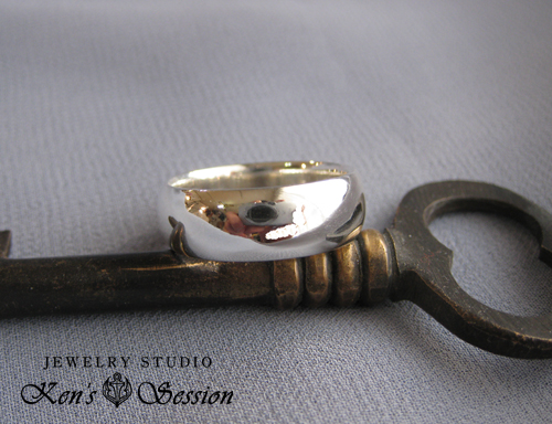 JUGEMテーマ:習い事・資格・講座 JUGEMテーマ:ジュエリー JUGEMテーマ:オリジナルデザイン・ハンドメイド 基本中の基本と言って良いと思いますが、彫金を学ぶ過程に甲丸(こうまる)リングというリングデザインがあります。 こちらが今回ご紹介する生徒さんの作品で、甲丸リングです。 いわゆる「かまぼこ型」のリングで、角が角張った長方形の板から平打ちリングを作り、ヤスリで削って形作ります。 リング幅が均一なのはもちろん、山の高さが均一で、その一番高い部分から端の部分までの下がり方、アールの度...