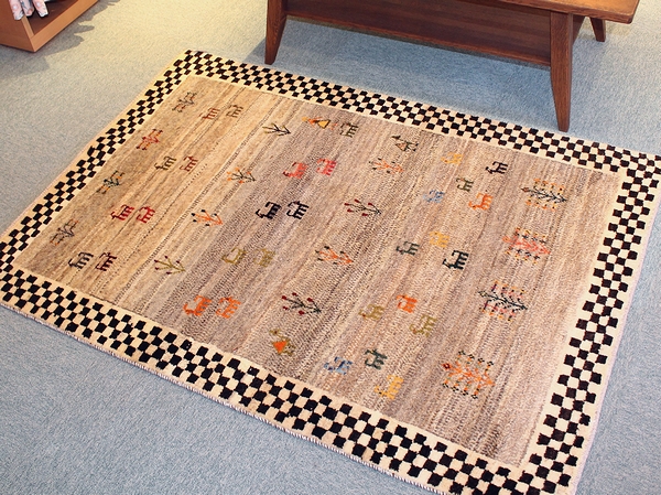 JUGEMテーマ:おすすめインテリア・雑貨 最近 入荷したばかりの ニューフェイス ギャッベ 原毛をベースにしているので、 色付きのモチーフが ふわりと浮かんで見えるような 不思議な感覚 ついつい、 「かわいい!」 と言ってしまう。 そんなデザインのギャッベです。 歪みもほとんどないので、 周りを囲むチェック柄も とてもキレイです 以前、ブログで 見る方向によって色合いが違って見える ギャッベは不思議な絨毯です とお話ししましたよね。 ...