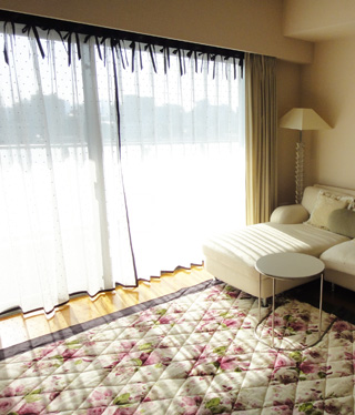 こんにちは インテリアデザイナーの大木です 花粉症の私 この時期はなるべく部屋から出たくない・・・ 家にいる時間が長くなると、「部屋の気分を変えたいな〜」とウズウズしてきます 本日は、家具・照明などは一切替えずに計画した 模様替えコーディネートのご紹介です まず元の部屋の話 模様替え前のインテリアは「黒」「白〜ベージュ」「鮮やかピンク」でした レースは、太い縦ストライプのカッコよさがあるデザインで、部屋全体がパリッとしていたのです それを・・・変えたのは、『大きな花柄のラグ』と『リボンが...