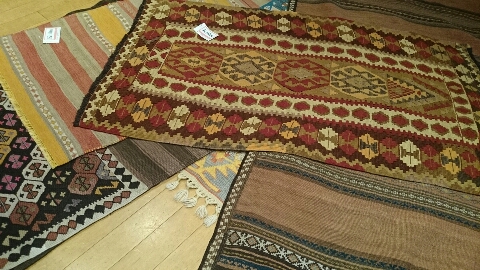 キリムラグ専門店「キリムジャパン」 http://kilimsjapan.com インテリアのアクセントにご提案したく 色々と見せてもらいました キリムラグは自宅のリビングルームにも 敷いてあり、大好きなアイテムです キリムは、中央アジアから西アジア、北アフリカにかけての 乾燥地帯や草原地帯で遊牧民が、織ってきた平織りの敷物のことをいいます 現在インテリアショップなどで安価に手にはいるキリムとは違い、 羊の毛を糸にして、草木で糸を染め、家族の祈りを込めた1点ものです 色合いについても、どの地域で糸を染...