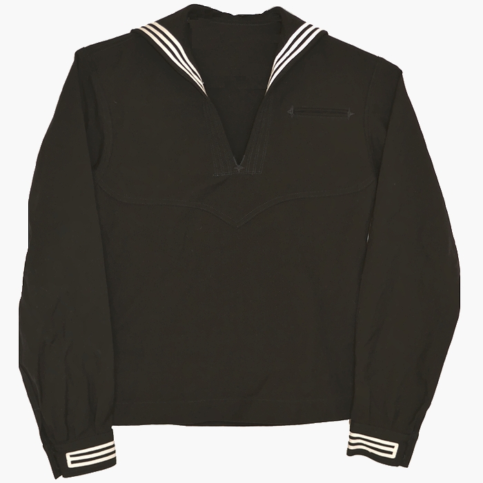JUGEMテーマ:ミリタリー 80s 米海軍(US NAVY)実物 ウール製 セラージャケット / ブラック 36R(Sサイズ) USED極上が入荷しました 80年代の米海軍(US NAVY)実物のセーラーシャツです。ブラックカラーの厚手のウール100%生地で頭から被って着用するプルオーバータイプのセーラーシャツです。実用性は少ないかと思いますが、状態も良く、サンプルやミリタリーコレクションアイテムとしておすすめです。リメイクやカスタムをしても面白いかと思います。小さいサイズですので女性にもおすすめです。 &...