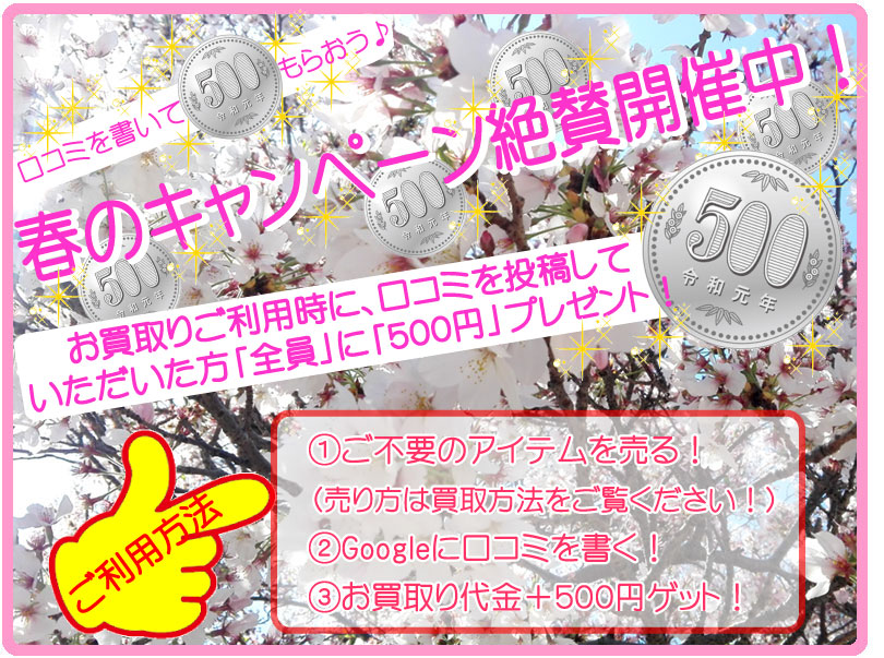 JUGEMテーマ:新品・古着・洋服など☆無料査定&高額買取 こんにちは 高額買取する古着屋さんのクラムジーです 「口コミ書いて500円もらおう」キャンペーン始まりした ↓ お買取りご利用時に、口コミを投稿していただいた方「全員」に「500円」プレゼント ↓ <<ご利用方法>> ?ご不要のアイテムを売る! ?Googleに口コミを書く! ?お買取り代金+500円ゲット! 店頭で、口コミ投稿用のQRコードをご用意して ご来店お待ちしており...