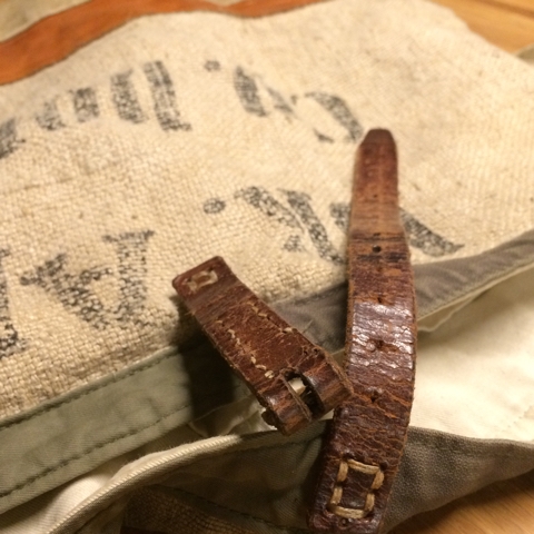 常連さんからのバッグの修理依頼。 元々はバックルが付いていたそうなんですが、いつの間にか壊れてなくなってしまったとの事。革が千切れそうな部分もあったりで、レザーストラップを新しく作りかえることになりました。修理というよりリメイクといった感じの作業です。