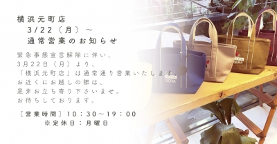「 横浜元町店 3/22(月)〜 通常営業のお知らせ 」 神奈川県の緊急事態宣言解除に伴い、3月22日(月)から、横浜元町店は通常通りに営業いたします。 皆様お近くにいらっしゃった際には、是非お立ち寄りくださいませ。 お待ちしております。 >>>•<<<>>>•<<<>>>•<<<>>>•<<< poisson de Paris【ポワソンドパリ】 葉山店 046-874-7215 横浜元町店 045-650-3351 神戸元町店 078-335-6516...