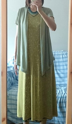 JUGEMテーマ:エスニック&アジアン こんばんは。 真夏の週末、アイスクリームを大量に買って帰りました。 今日のコーデは爽やかなグリーンのワンピにしてみました。 カーデも同じグリーン系で統一しました。 前下がりのカーデは、 寸胴に見える体型をカバーしてくれます。 ドレス:頂きもの カーデ:ファニカン ネックレス:チャイハネ カーデは絞るとリーゾトぽっくなりますね。 絞った方が腰周りがスッキリして脚長効果もあります。 夏のノースリーブには欠かせない ファニカンさんのカーデです。 ...