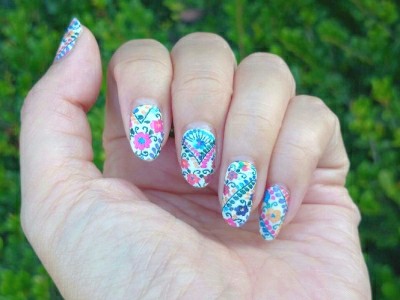 JUGEMテーマ:エスニック&アジアン ペタッとシールで貼るエスニック柄のネイル。 柄が可愛くて可愛くていつも使っているので 貼り方も板についてきました。 最初の貼り方が大事なんです。 一度、シワや空気が入ってしまうと 後からいくら伸ばしても トップコートを塗るとヨレしまうんですね。 最近はちょっとくらいシワになっても気にしません。 柄が派手なのであまり目立ちません。 デコッテネイル by チャイハネ メキシコテイストの花柄が夏の陽射しにピッタリです。 ネイルシールと合わせてパン...