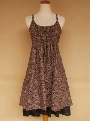 バンドゥンバティックを使用して作った新作第3弾!胸元プリーツ・ダブルワンピースです。前身ごろの胸元は、プリーツになっています。後ろ身ごろはシャーリングに。肩紐の長さは調節可能です。スカートの左右にポケット付き!DUNIA〜インドネシア衣類&雑貨〜http://www.dunia-bali.com/index_jp.html