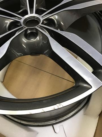 JUGEMテーマ:リペア 信州ではそろそろ気の早い方がスタッドレスにタイヤ交換 する時期です。そんな私もそろそろ。 この時期は春から秋にかけて傷をつけてしまったホイールの 修復依頼が増えます。昨日一昨日も入ってまいりました。 15インチの私は知らない(申し訳ないです)メーカーのホイール。 左前方をクラッシュしホイールにも傷が入ったようです。 パッと見ポリッシュ・・・なのですがヘアラインもしっかり有り、 若干虹色にも光るのでダイヤモンドカットと判断。 お客様に...