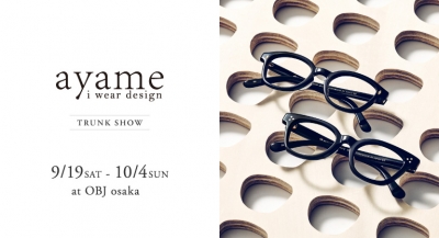 こんにちは。 いつもOBJ大阪のブログをご覧いただき 誠にありがとうございます。 "温故知新"をブランドコンセプトに クラシカルなアイウェアを 現代的なデザイニングや 繊細なフレームワークで 再構築している ドメスティックアイウェアブランド "ayame"。 只今、当店OBJ osakaにて 9/19(土)〜10/4(日)の日程で "ayame TRUNK SHO...