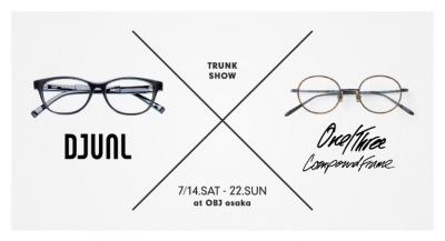 こんにちは。 いつもOBJ大阪のブログをご覧頂き誠にありがとうございます。 ブログでの告知が遅くなりましたが、イベントのご案内をさせて頂きます。 去る7月14日(土)から22日(日)までの9日間、 日本のアイウェアブランドDJUALとOne/Three Compound Frameの ダブルトランクショーをOBJ大阪にて開催しております。 DJUALとは「相対性」を意味する造語で、 機能性とデザイン、作り手とユーザーな...