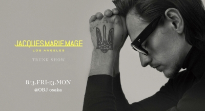 こんにちは。 いつもOBJ大阪のブログをご覧頂き誠にありがとうございます。 さて昨年ご好評をいただきましたJACQUES MARIE MAGEの トランクショーが今年も開催されますのでご案内を。 8月3日(金)〜8月13日(日)の期間中、同ブランドの 新旧コレクションが店頭に並びます。その数なんと、約140本! そして昨年同様1日限りですが、 8月5日(日)はデザイナーであるジェロム・マージュ氏も来店予定...