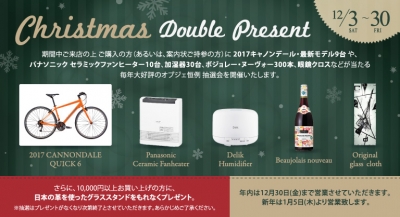 こんにちは♪ いつもOBJ大阪のブログをご覧いただき誠にありがとうございます。 さて本日は毎年恒例のクリスマス・年末キャンペーンのご案内です! 12/3〜12/30の期間中にOBJからお送りしているDMハガキをお持ちいただくと 抽選券としてご利用いただけます。 今年の抽選プレゼントは2017キャノンデール最新モデル9台や、 CANNONDALE QUICK 6 パナソニック セラミックファンヒー...