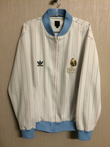 JUGEMテーマ:ビンテージ 古着 アディダス ワールドカップ・フランスチーム3種 ホワイトにレッド・ブルーの細いラインが入ったちょっと珍しいタイプ。ベトナム製。YKKジップ。 上のホワイトタイプと同時期と思われる水色/紺ラグラン仕様、トリコロールカラーのラインタイプ。YKKジップ。ベトナム製。 ほぼ同じタイプですがサイズ表記が違い、ホワイトはXL、水色はXO。 2000年代のワールドカップジャージと思われます。裾部分にワールドカップトロフィーの金属ピンズが付属。中国製。上の2種とカラー(襟)の形...