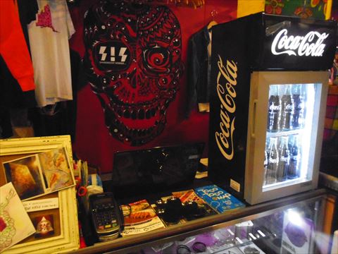 JUGEMテーマ:ビンテージ 古着こんばんわ!埼玉県所沢市のカルチャーショップSANDINISTA!STUDIOの会長です!店内改装に伴い、当店稼ぎ頭のコカ・コーラがレジ前に移動してきました。この壁にかかれえているドクロの前に僕が座っていつもPC作業などしているのですがこのコカ・コーラ自販機、圧迫感凄いです笑エコモードなのか終始ファンが動いているわけではなく時折ウィィ〜ンとファンが動き出して、その都度ビクッっとします。それにファンが止まる時、けっこうな勢いでスゥンッって止まるのでその都度レジカウンターがグラグラっ...