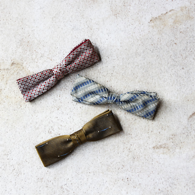 JUGEMテーマ:古着*大好き JUGEMテーマ:ビンテージ 古着 vintage | Three kinds of bow ties } http://stlow.net/?pid=71232486 アメリカより入荷いたしました60年代頃のヴィンテージ蝶ネクタイ。 色使いや柄が古いものならではの良い雰囲気。 使いやすいバレッタの形状で、両方の衿に挟んで固定します。 きりりとしたメンズライクな着こなしなどのアクセントにお勧めですよ。 Size 実寸(cm) Red: 12 × 3.3 Blue: 9.7 × 3.3 Khaki: 11.5 ×...
