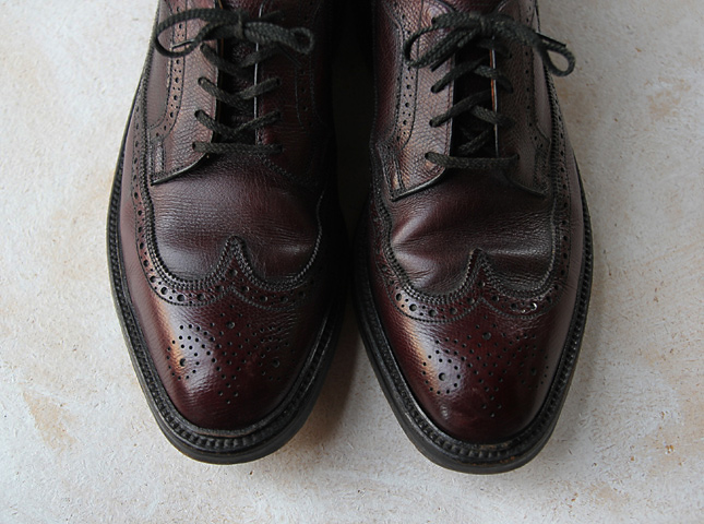 JUGEMテーマ:ビンテージ 古着 OLD "NUNN-BUSH" WING TIP LEATHER SHOES 10290yen 1980年代ころのアメリカ老舗シューズブランド"NUNN-BUSH"製レザーシューズ、サイズ表記は8D、ダークブラウンのボディーにスタンダードな装飾が施され、オールド感を感じ取っていただける商品です。 多少の使用感は感じ取れますがダメージ、ソールの減り等は見受けられず普段から古い物にご理解のある方でしたら問題なくご使用いただけそうです。 幅広いコーディネートにご使用いただけ1足持っていると重宝してくれそうですね。サイ...