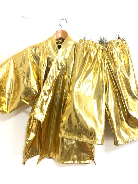 音楽をされているバンドマン、アーティストの方に衣装としてオーダー頂きました。 この度もありがとうございます(^^♪ 男性には金キラのゴールド甚平を。 女性には織り柄の高級感たっぷりの長羽織りと袴風ワイドパンツを。 お二人でゴールドが高級感たっぷりで目立ち、衣装としてばっちり華やかです! 金キラゴールド甚平はすっごい光輝いてます! 作製の時も眩しいくらいに(笑) 舞台上でとっても映えて目立ちま...