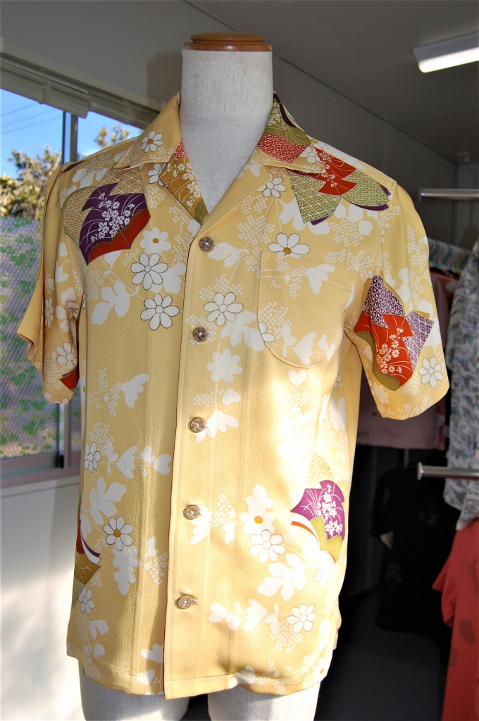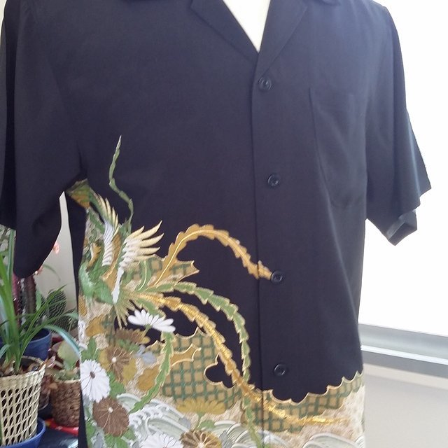 JUGEMテーマ:おすすめメンズファッション 留袖リメイク:アロハシャツ! 素材はシルク100%、 正面は大柄が入り派手に見えますが、シャツは最高です ダンディー派には最高のシャツです。 詳細はこちらへ https://minne.com/account/products