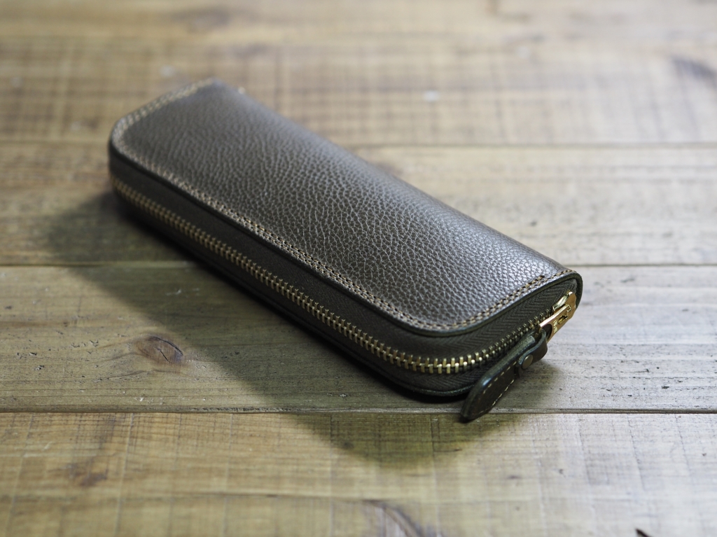 【ペンケースTLNのカスタムオーダー】 今回ご紹介致しますのは、先日納品致しましたペンケースTLNのカスタムオーダー品です。 ファスナーは通常と同じくTalonなのですが、ダークブラウン×ゴールドのカラーに変更致しました。 元々、Talonのダークブラウンは若干オリーブ系が入っておりますので、外装のオリーブの「アリゾナ」との相性も良いです。 ファスナーの引手はカスタム仕様に変更。 内装は、ア...