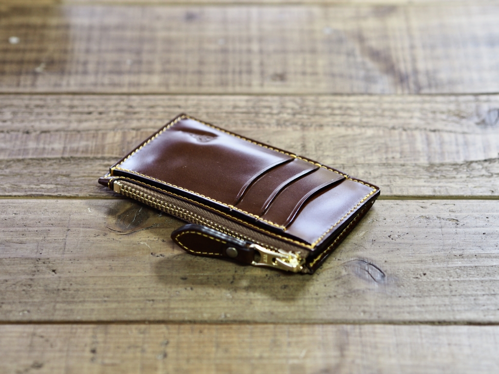 【カードウォレットのカスタムオーダー】 今回ご紹介しますのは、先日納品致しましたカードウォレットのカスタムオーダー品です。 レザーを国産水染めコードバンに変更。 ステッチはイエローをセレクトしております。 コードバンならではの艶、ムラ感が高級な雰囲気^^ それと、カードポケットの向きを左右逆にしております。 背面はシンプルな外観です。 カードウ...