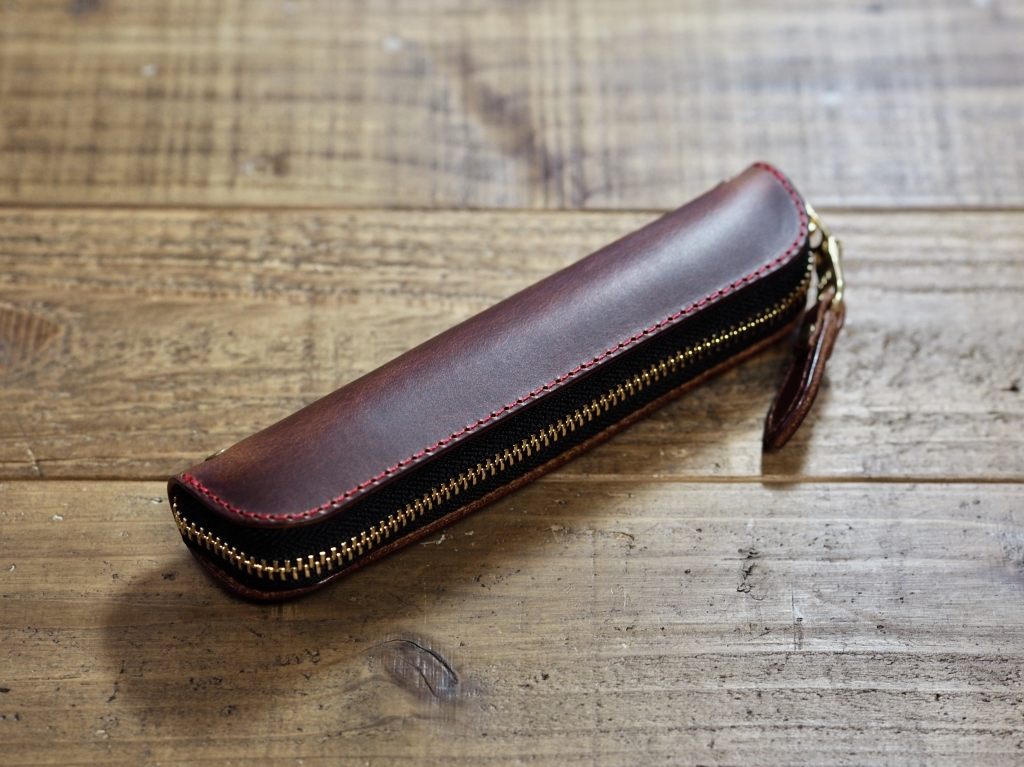 【スリムペンケースのカスタムオーダー】 今回ご紹介しますのは、先日納品致しましたスリムペンケースのカスタムオーダー品です。 革を型押しシボの「ドラーロ」からプルアップレザーの「マレンマ」の赤茶に変更。 ステッチは赤です。 ファスナーはブラック×ゴールドのYKK。 引き手をカスタム仕様にしております。 中にはペンホルダーが一つ付いております。 ...