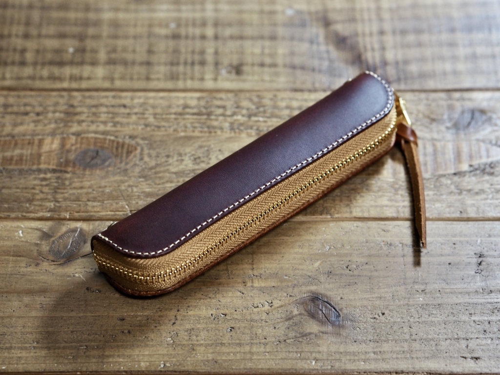 【マレンマ(赤茶)のレザーペンケースM/カスタムオーダー】 今回ご紹介しますのは先日納品致しましたペンケースMのカスタムオーダーです。 ファスナーを通常のベージュからブラック×ゴールドに変更。 通常仕様がこちらなので、ファスナーを変更しただけでかなり印象が変わりますね。 レザーはイタリア/ワルピエ社のプルアップレザー「マレンマ」です。 プルアップレザー特有の曲げると色が薄くなる特徴がお分かりでしょうか? ...