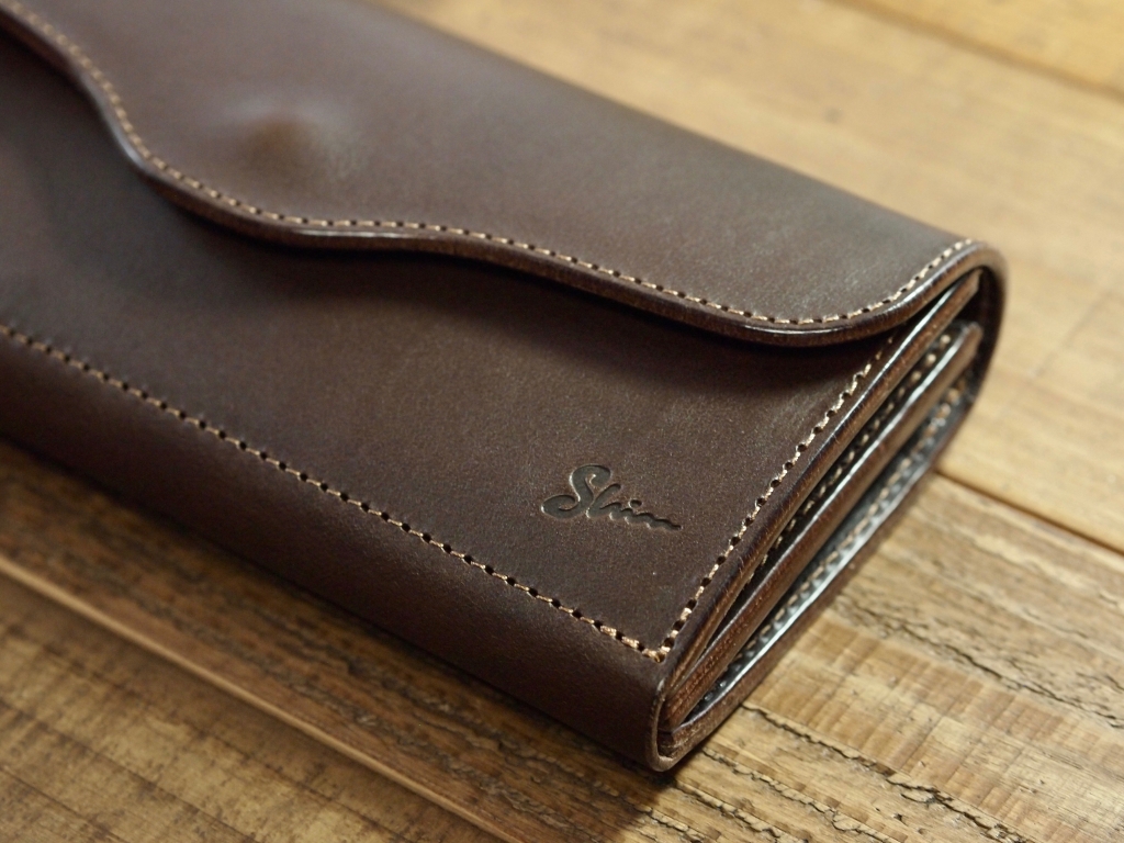 【ダークブラウンの長財布(フラップウォレット)、名刺入れ、ウォレットスリーブ】 今回ご紹介しますのは先日納品いたしました、フラップウォレットとウォレットスリーブ、そして名刺入れです。 ダークブラウンのレザーはイタリア/モンタナ社の「リオ」を使用。 落ち着いた雰囲気ですね。 内装 3面にカードスロット計12枚と真ん中にコインケースを装備。 ちょっと見にくいですが、お客様のご希望により「令和元年製造」の刻印を...