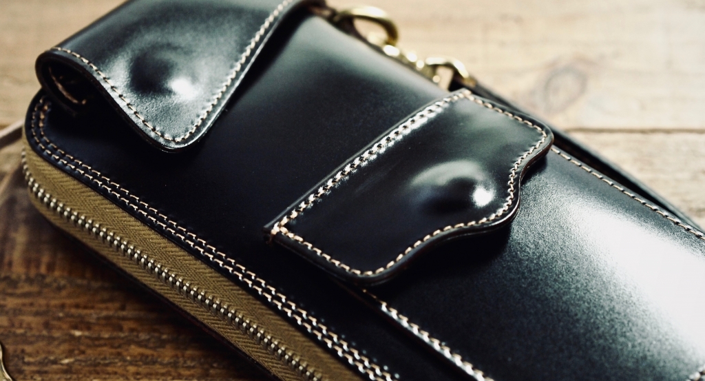 【コードバンのフライトウォレットType A-2】 今回ご紹介いたしますのは、先日納品いたしましたフライトウォレットコードバン仕様です。 全体像です。 やはりフライトウォレットは唯一無二の存在感です。 ちなみにフライトウォレットとは何?という方は↓をご覧ください。 フライトウォレットType A2とは? 今回のオーダーではヌメ革タグを内装に移動させておりますので、外観はシンプルになっております。 背中側から...