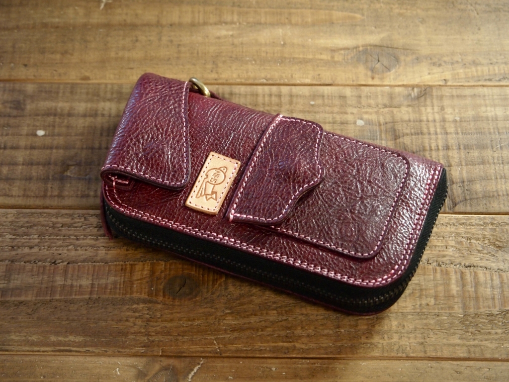 【赤いプルアップレザーのフライトウォレット/カスタムオーダー】 今回ご紹介しますのは赤いプルアップレザーのフライトウォレットです。 レザーは最近人気のイタリア/テンペスティ社のプルアップレザー「イビザ」。 質感、艶、ボリューム感等、全てにおいてクオリティの高い革です。 ファスナーは「riri」のバーガンディをセレクト。 プルアップレザーとはこの襟部分のように折り曲げたときに色が薄くなる特徴を持つレザーです。 それによりグラデーションが出て深みのある...