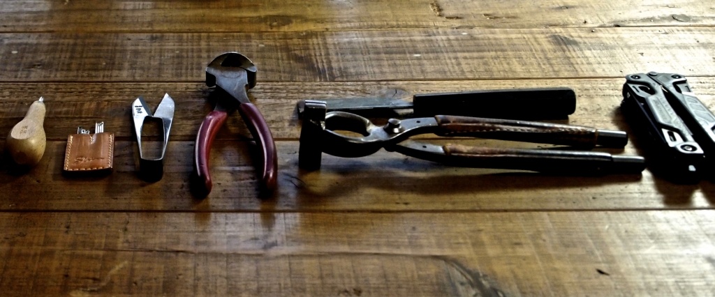 ハンドメイドの革製品を製造販売しております【SHIN】代表兼職人の加來(かく)です。 こんにちは!今回は普段僕が革製品を作るときに使っている「道具」をご紹介いたします。 革の財布やバッグなどがどのような道具によって作られているかが、少しですがイメージが湧くと思います。 「口金押さえ」 かなり使う頻度が高い道具です。 これは革と革を「ゴムのり」で貼り合わせたあとにこの道具で挟んで圧着します。 これでちゃんと圧着しておかないと、縫っている最中に貼り合わせた革...