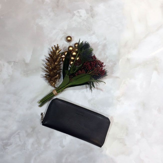 Round Zip Wallet / Black Leather ホリデーギフトにもぴったりな イタリアンタンニンレザーを使用したロングウォレット。 シーンやシーズンに関係なく、毎日使える長財布は 大切な人へ贈り物にも、自分へのご褒美にも◎ シンプルなデザインなので、 お揃いや色違いを楽しむのもおすすめです。 イタリアンタンニンレザーは滑らかな肌触りが特徴のレザーで 特別なお手入れをしなくていいところもうれしいポイント。 お使いいただくうちに、よりしっとりとした質感や艶感など レザー...