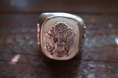 こんにちは。 今日も良い天気です。 それではこちら。 『US AMRMY』 マザーオブパールの台座に US AMRMYのエンブレム。 サイドにはUSAの刻印が施された シルバー製のミリタリーリングです。 サイズは17号 いかがでしょうか? 『US AMRMY』 Military Ring Size 17 price 12.960 ※商品の詳細及び通信販売ご...