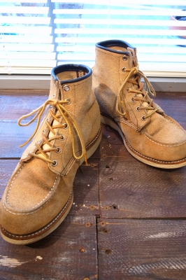 こんにちは。 雨です。 それではこちら。 『REDWING』 アビレーン・ラフアウトレザーを使用した モックトゥーブーツです。 革の表面を内側にし、起毛した裏面を表にしています。 ちなみにアビレーンとは かつて荒くれ者の集う街として悪名高かったテキサスの町の名前です。 『REDWING』 Moc Toe USED Color BG Size 8 Price 12.960 MADE IN U.S.A. ※...