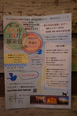 こんにちは。 気持ちの良い天気ですね。 それではこちら。 東長崎の北口にある Planet Handさん主催の 『まち中つながる展示会』 あなたの絵や写真がまちのお店に飾られます。 当店も協力店舗として 絵や写真などを飾るスペースをご用意します。 期間は5月〜7月までの2か月間です。 ご興味のある方はお気軽にお問い合わせ下さい。 そんな訳で Planet Handさんのブログで 当店をご紹介頂いているので こちらも是非、ご覧下さい。 http://ameblo.jp/planet-apdoor/entry-12141625722.html JUGE...