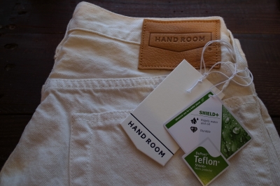 こんにちは。 曇りです。 それではこちら。 『HAND ROOM』 12oz セルビッチデニムの ホワイトが入荷しました。 インディゴ同様、上質な米綿を使用し、 ユニオン社製のミシンで縫製した本格的なデニムです。 シルエットの良さ、履き心地と申し分ありません。 ただ、気になるのは・・・汚れ。 こんないつ雨が降るのかもわからないような曇り空の中、 誰がホワイトデニムをチョイスするでしょうか。 しかし、そんな事も気にせづ穿けてしまうのです。 Dupont社のテフロンファブリックプロテ...