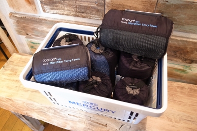 こんにちは。 良い天気ですね。 それではこちら。 『Terry Towel Light』 吸水率が高く、尚且つ速乾性に優れた 100%マイクロファイバーのタオルです。 更に軽量でアウトドアやトラベルにも便利な スタッフザック付き。 そしてこの様なタグも フックにかける事ができますので 乾かす時にも便利です。 今回、新色のバンブーグリーンとコアラグレーには タオルの真ん中にストラップが付きました。 サイズはLとXLでご用意しております。 Lサイズは120×60cm 150g 収納時は...