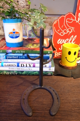 こんにちは。 良い天気ですね。 それではこちら。 『Horseshoe Accessories Stand』 馬蹄のアイアン製アクセサリースタンドです。 高さは約22.5cmで重厚感があります。 馬蹄は幸運のアイテムとしても知られています。 アクセサリーの他、玄関先で鍵を下げるスタンドとして 使用するのも良いですね。 こちらのアイテムは ハンドメイドの1点物になります。 気になる方はお早めに。 『Horseshoe Accessories Stand』 Price 8.100 HAND MADE ※商品の詳細及び通信販売ご希望の方は...