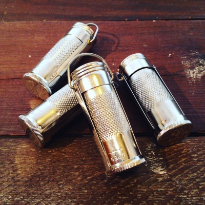 こんにちは。 イイ天気です。 それではこちら。 ブラスにニッケルメッキコーティングを施した 防水のマッチボックスです。 使い方はこの←OPENの方向に回すと 上部に隙間が出来た事が分かりますでしょうか? するとこんな感じにパカっと開くのです。 本来はこのようにマッチを収納するモノですが、 さんばすくる〜達はこの中に フリスクやらタブレットを入れて持ち歩いています。 ずいぶんとカッコ良いことしてるじゃない!と早速盗撮してみました。 皆様はど...
