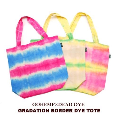 タイダイアーティスト「DEAD DYE」の染によるトートバッグがGOHEMPより入荷しました〜☆ 薄手のヘンプコットン生地を使った形はとってもシンプルで、フラっと散歩や買い物に出かける時に重宝しますよ! カラフルなボーダー状のバイカラーデザインが個性的☆■GOHEMP 『GRADATION BORDER DYE TOTE』 ↓詳細・お買い求めはONLINE SHOPでどうぞ↓---------------------------■□■この商品を注文する■□■クレジットカード/銀行振込/代金引換---------------------------■サイズ・色など「SOLD OUT」となっているものでもメーカーに在庫ある...