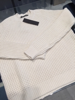 HAIDER ACKERMANNゆったり感に編み地の大きさ、肌触りも優しく包まれる様な感触せめているイメージの強いハイダーですが、こんなにも優しくみえるニットもあるんです。幅広い表現力、最高のローゲージニットイタリア製 羊毛 100%