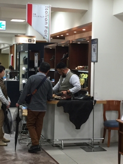 JUGEMテーマ:頑張ってます JUGEMテーマ:本日の更新 JUGEMテーマ:日々のおしゃれ MITSUKOSHI創業祭に、 お客様の靴磨き少年が登場していたので 覗き見をして参りました。 黙々と作業を進めていく姿は、周りの人の足を止めていました 格別な仕上がりに持ち主の方も喜ばれるでしょね