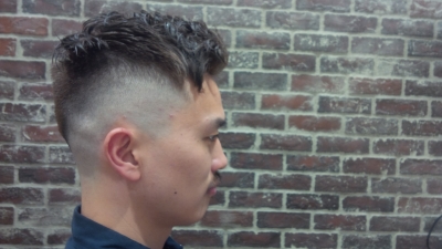 JUGEMテーマ:日々のおしゃれ •モデル 井上くん(専門学校の友人)... •髪質 普通 •技術 サイド、バッグをスソ2mmからのフェードでスッキリさせフロントに長さを残してボリュームが出るようにします。 •セット方法 ドライヤーでフロントにボリュームを出し トップ、サイドはおさえます。 ポマードを全体に馴染ませ、コームで整えます。 by shop manager 高橋 一城