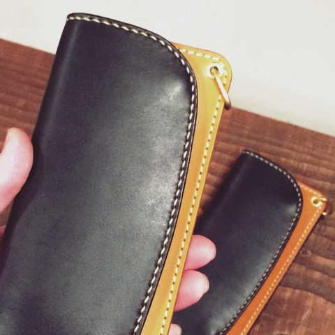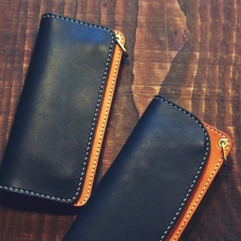 微妙にデザインの違う長財布2種類。 左が廃盤となったスリムロングウォレットで、右が定番のスタンダードロングウォレットです。期間限定でスリムウォレットも製作し購入可能となっております。通販サイトのウォレットのカテゴリーには掲載していないので、下記リンクからお進み下さい。 通常のスタンダードウォレットでも、できるだけ厚みを抑えたサイズ感で製作しておりますが、スリムウォレットは更に薄くスリムに作られていて、長財布が嫌いな方にも人気のアイテムです。表は似ていても中...