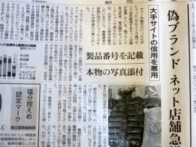 "ヤフーや楽天といった大手ショッピングサイトで偽ブランド品を販売するネット店舗が急増している"と、先週土曜日の朝日新聞の社会面の記事にありました。