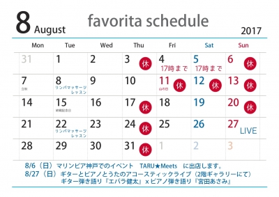 JUGEMテーマ:セール・お買い得・福袋 8/1(火)13:00〜OPEN 8/4(金)8/5(土)17:00CLOSED 8/6(日)マリンピア神戸にてイベント出店! すぐに涼感セット、ファッション雑貨セットなど福袋の販売☆ 8/11(金)〜13(日)夏休み 8/27(日)LIVE 17:00open 17:30〜 (g,v)エバラ健太さん、(p,v)宮田あさみさん