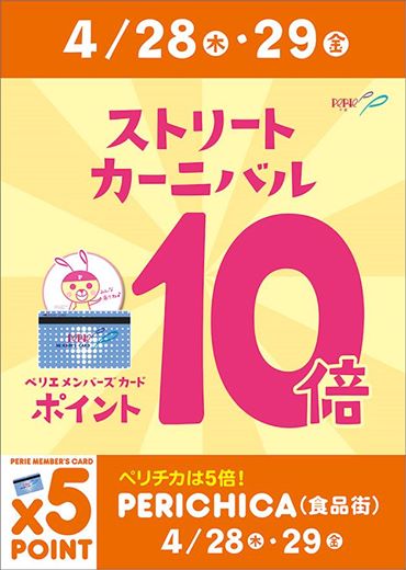 ☆ポイント10倍!! 4/28(木)・29(金)の2日間は ストリート・カーニバルにてポイントが10倍に(^^♪♪ ペリエ千葉には、 初夏のアイテムがたくさんそろっていますよ♪... 欲しかったアイテムが一番オトクに買える2日間です! http://www.perie.co.jp/chiba/pointup/ JUGEMテーマ:セール・お買い得・福袋