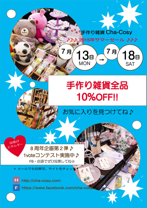 Cha-Cosy ◆ 洋服直し・手作り雑貨のお店 ちゃこーじー | 2015.07.18 Sat 10:15