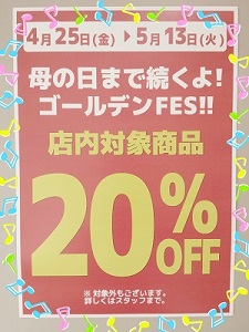 JUGEMテーマ:天然石アクセサリー JUGEMテーマ:パワーストーン JUGEMテーマ:母の日プレゼント JUGEMテーマ:オシャレ大好き☆最新セール情報! JUGEMテーマ:セール・お買い得・福袋 こんにちは〜 ANAHITA STONES イオン久御山店 今日もやまちゃんがお送りします ゴールデンウィークが始まりましたね 今日からお休みの方もいらっしゃるのではないでしょうか うらやましい〜 さてさて、今回ご紹介するのは ゴールデンウィーク特別企画 母の日まで続くよ! ゴールデンFES!! ★4月25日(金)〜5...